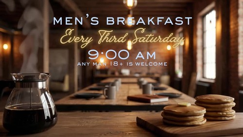 Men's Breakfast is every third Saturday at 9:00 am